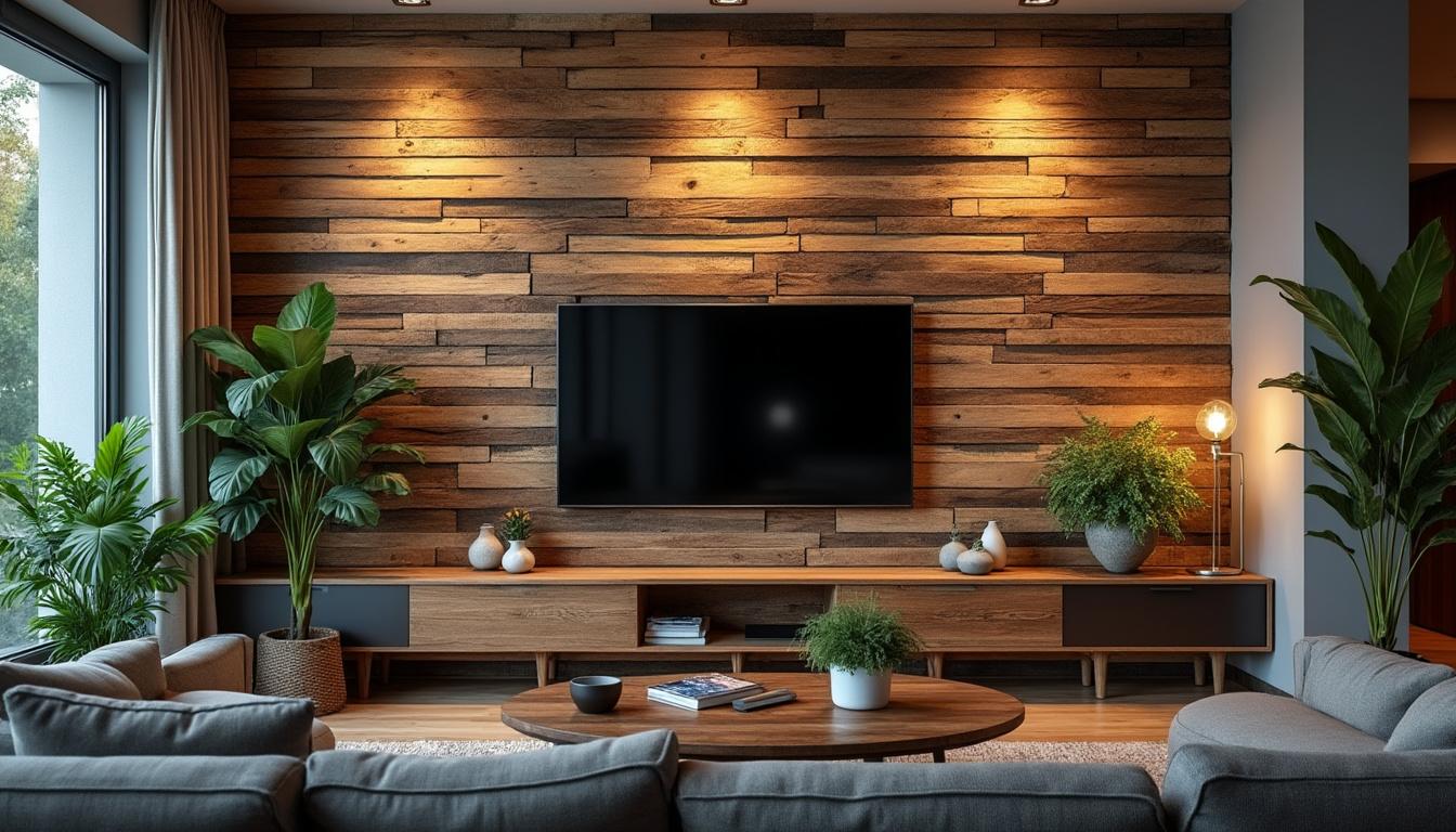 Pour améliorer le confort acoustique et la modularité, envisagez des modules interchangeables (plateaux coulissants, niches pour enceinte, panneaux acoustiques recouverts de tissu) qui permettent d’adapter la paroi aux usages (cinéma maison, gaming, écoute musicale). L’emploi de contreplaqué ou de panneaux stables pour les éléments porteurs assure une meilleure tenue dans le temps et facilite l’assemblage mécanique démontable (équerres, rails, tenons simples). Côté finition, privilégiez des traitements naturels qui protègent sans alourdir l’entretien, comme une huile végétale ou une cire qui offrent une patine régulière et facilitent les retouches. Enfin, intégrez des considérations d’ergonomie — hauteur de vision, inclinaison possible et accès aux commandes — pour que l’ensemble reste pratique au quotidien et s’adapte facilement aux évolutions de votre équipement et de votre intérieur.